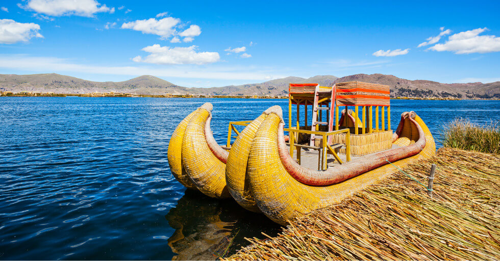 Their economy is based on fishing, sale of handicrafts, and barter. It takes about 30 minutes from the shores of Lake Titicaca to get to the Uros floating islands.