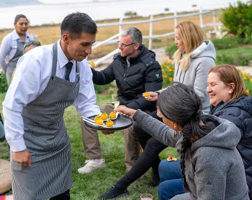 Termos e Condições: Para usufruir dos benefícios do programa Benefícios PeruRail, o passageiro deverá ter adquirido sua passagem de trem exclusivamente pelo site www.perurail.com ou em pontos de venda oficiais da PeruRail. Não é válido para compras realizadas por agências de viagem ou canais não autorizados. O desconto fornecido pelo estabelecimento é pessoal e intransferível. Seu uso está sujeito às condições estabelecidas por cada empresa em sua própria plataforma. O estabelecimento poderá solicitar o código de reserva, o bilhete de trem e um documento de identidade válido no momento da compra. O benefício oferece uma tarifa promocional de $60, que inclui 10% de taxa de serviço. A promoção é válida para reservas de no mínimo três pessoas e deve ser solicitada com antecedência mínima de 24 horas. Experiência Pôr do Sol inclui: 1 taça de vinho, garrafa de água, tábua de queijos, tábua de frios e cheesecake de frutas da estação. Fogueira e pérgola. Experiência Piquenique inclui: mesa alta com petiscos doces e salgados, estação de bebidas, mesas baixas com almofadas e pérgolas, serviço personalizado durante todo o evento, música ambiente e fogueira.