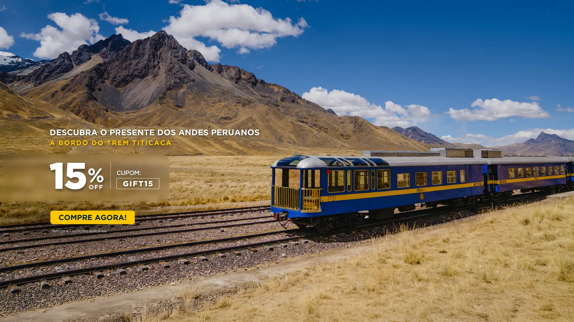 Descubra a magia de viajar entre Cusco e Puno a bordo do Trem PeruRail Titicaca. Aproveite paisagens únicas, serviço de luxo e 15% de desconto. Presenteie com uma experiência inesquecível neste Natal!